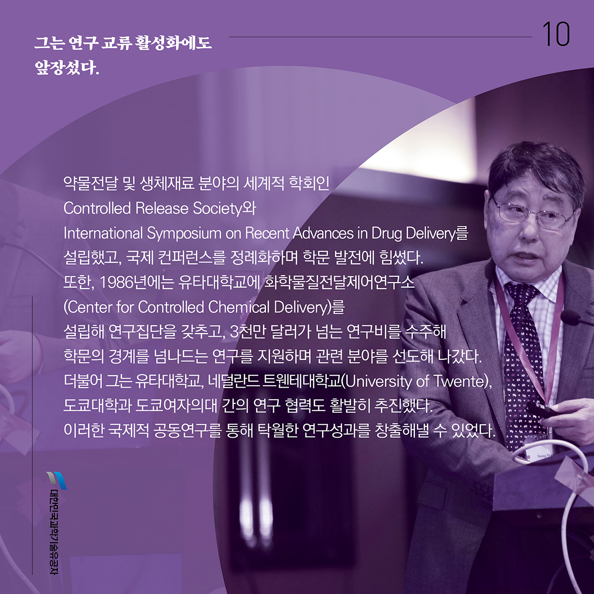 약물전달 분야의 세계적 바이오의약학자 작성자 관리자2 작성일 2024-05-16 조회수 11813 다학제적 지식을 접목하여 독창적인 연구 분야를 개척함으로써 난치병 치료의 길을 열었으며, 미국 의학아카데미와 공학아카데미 종신회원 동시 역임(논문 722편, 특허36편) 인공심장 이식수술에 필요한 고분자 재료를 개발하고 다수의 벤처기업 창업 목록 다음글 ▲ 중공업 기반 대한민국 산업화의 설계와 국가표준의 기틀을 마련한 선구자 포항종합제철소(현 POSCO) 설립, 고유모델 자동차 정책 등을 기획 및 추진하여 중공업 기반 경제성장의 발판 마련 국가표준체계를 마련해 우리나라 과학기술의 선진화 및 지속가능한 산업발전의 기반 구축에 기여 이전글 ▼ 대한민국을 빛낸 과학기술유공자를 찾습니다