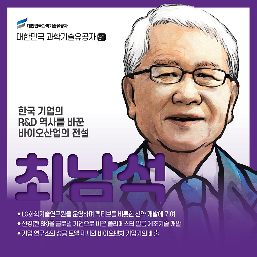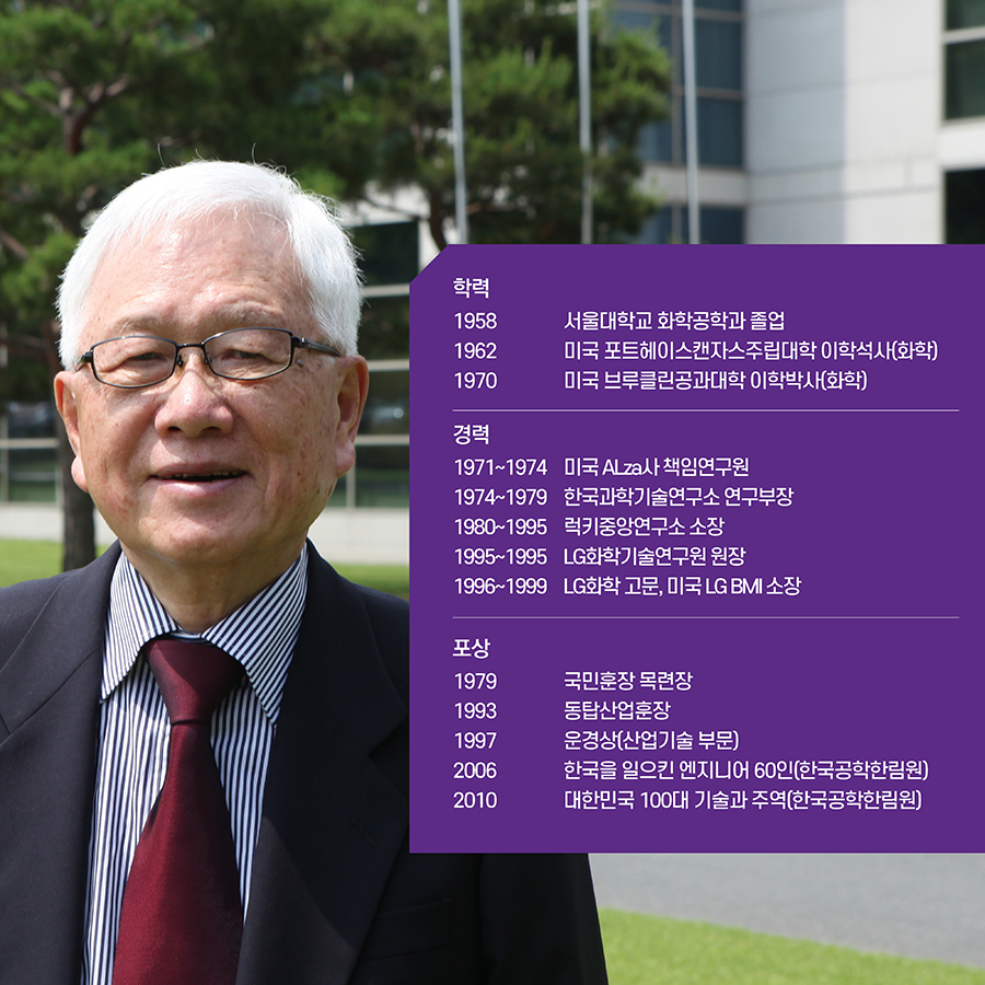 한국 기업의 R&D 역사를 바꾼 바이오산업의 전설 작성자 익명 작성일 2025-05-21 조회수 7026 LG화학 연구소를 주도하며 팩티브를 비롯한 신약 개발에 기여 선경을 글로벌 기업으로 이끈 폴리에스터 필름 제조기술 개발 기업 연구소의 성공 모델 제시와 바이오벤처 기업가의 배출 목록 다음글 ▲ 故 염영하 박사 타계 30주기 추모 스토리 지금 우리가 기억해야 할 과학기술유공자 "한국 전통 범종의 신비를 입증한 한 명의 과학자, 염영하 박사를 기억해 주세요." 이전글 ▼ 국가의 미래를 설계한 과학기술행정가 의약품·농약 성분 국산화와 정밀화학 산업 기반 구축 물질특허 시대를 대비한 신물질 창출 연구체제 확립 과학기술연합대학원대학교 설립 등 과학기술 진흥정책 주도